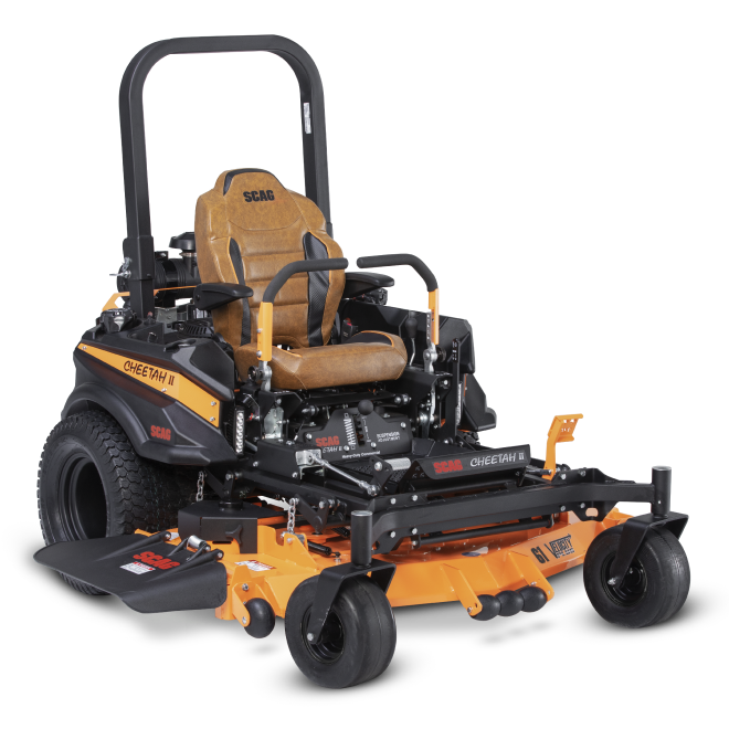 The Scag Cheetah II is a mower that devours jobs at a pace you’ve only dreamed of while delivering an unmatched quality-of-cut and incredibly smooth ride. It has a 61″ or 72″ cutting width.